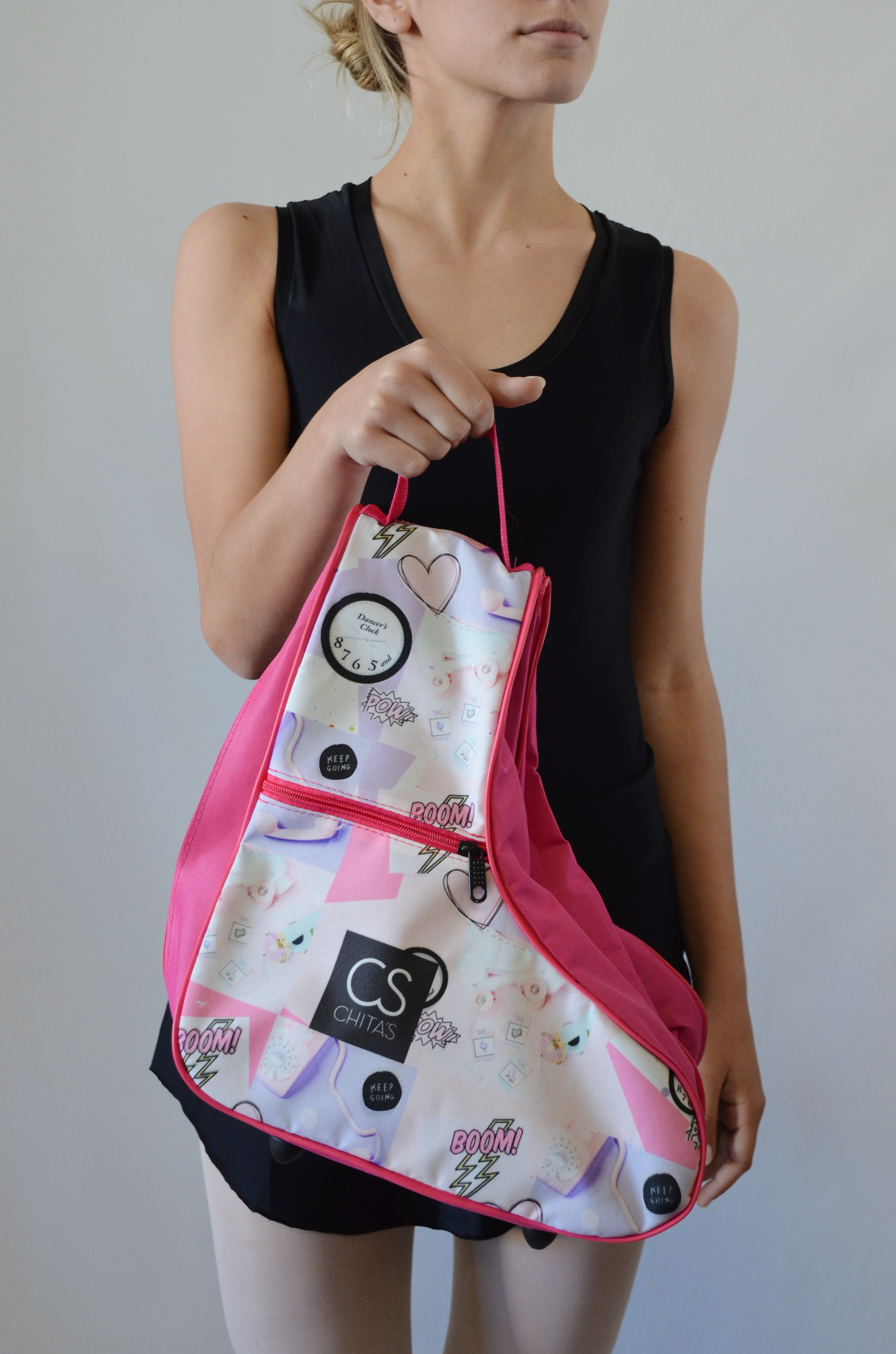 Bolso estampado de lona. Práctico y liviano. Ideal para llevar tus patines con estilo y comodidad. ¡Diseño único que destaca!