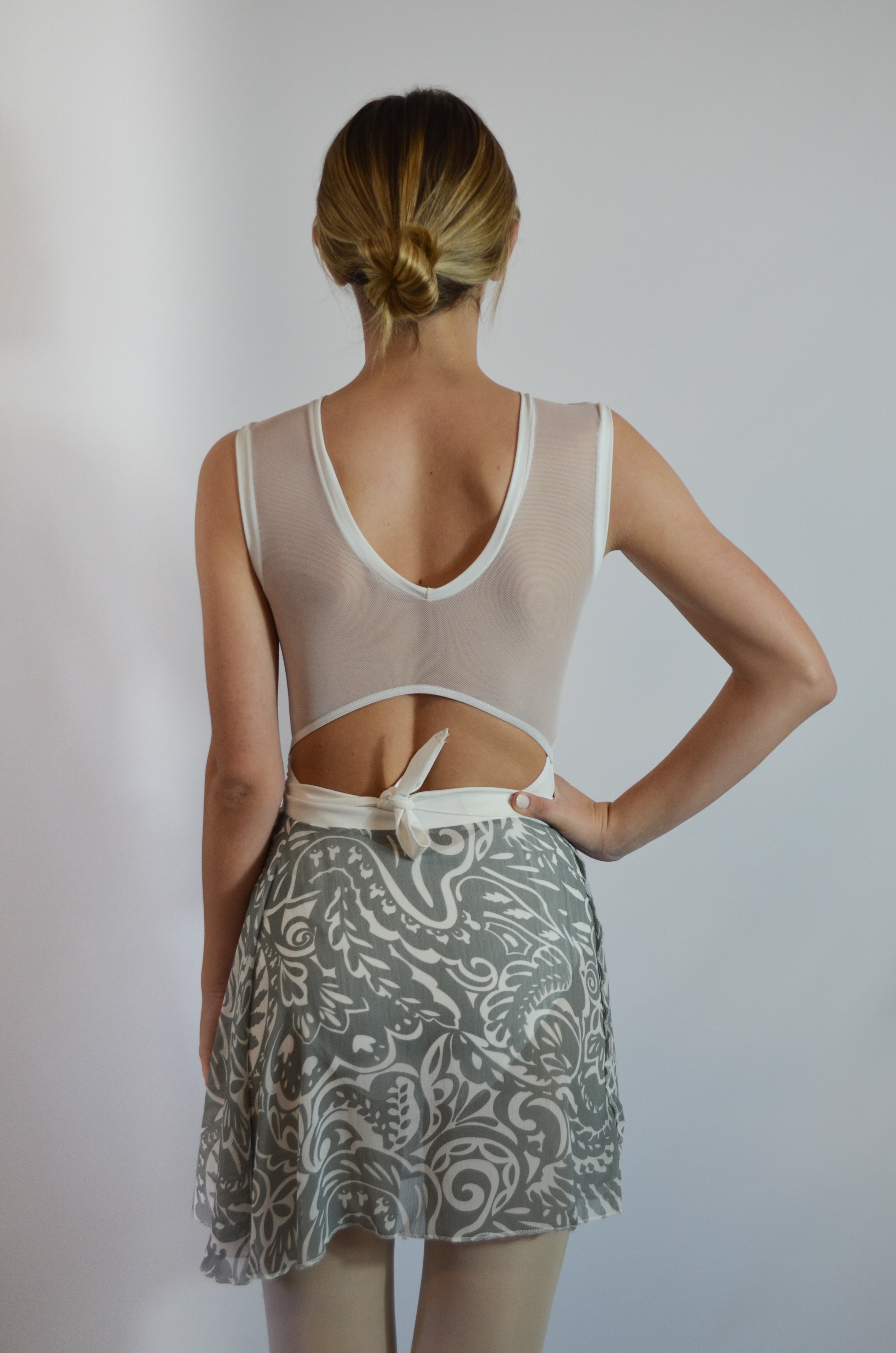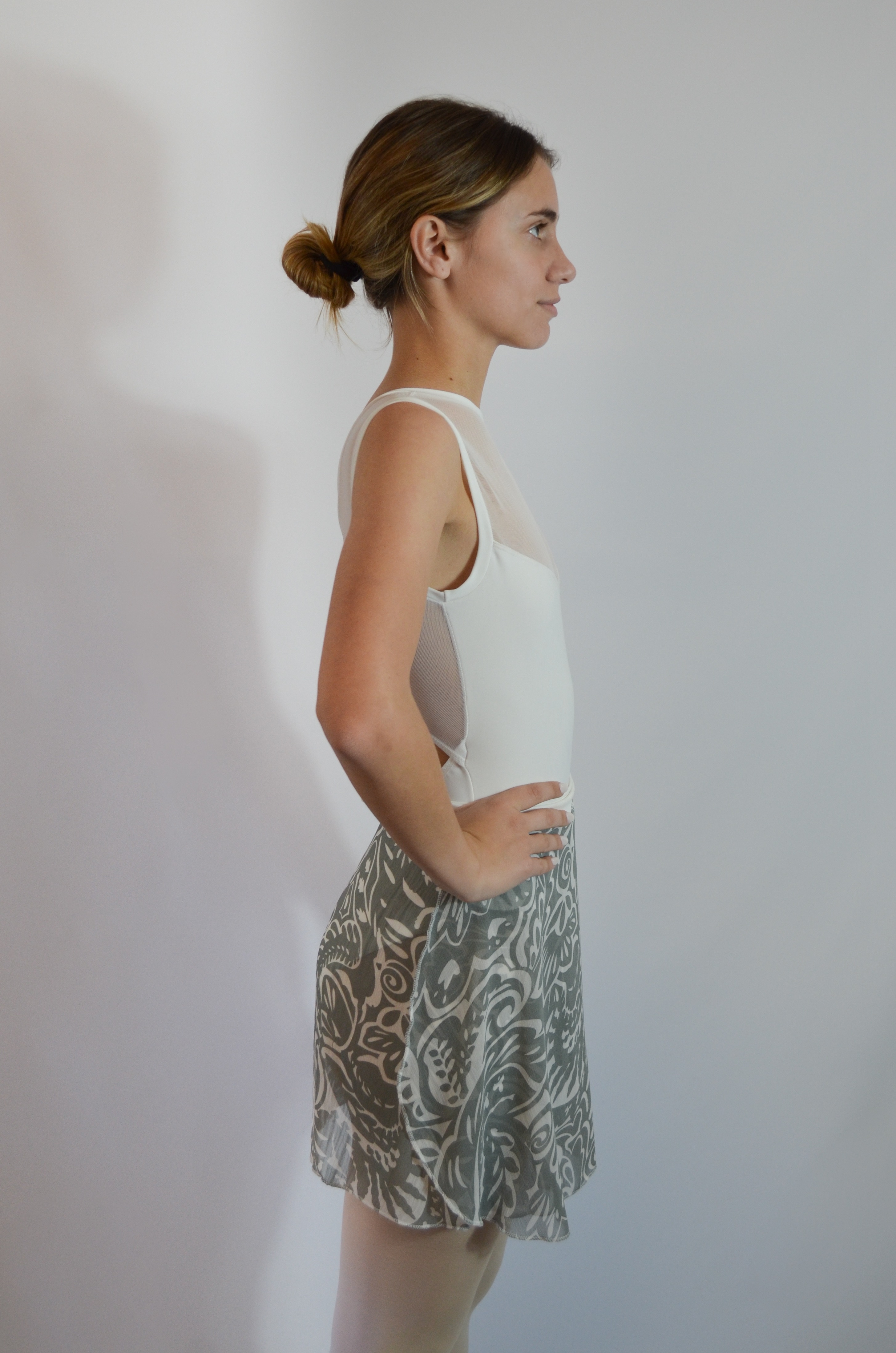 Pollerín de gasa estampado. Liviano, fluido y con estilo. Perfecto para tus clases. Realza el movimiento en cada paso y la silueta sin limitar la expresión.